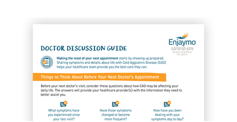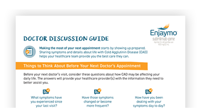 Find out more information about Cold Agglutinin Disease and ENJAYMO to help you see if ENJAYMO can help you hit resume.