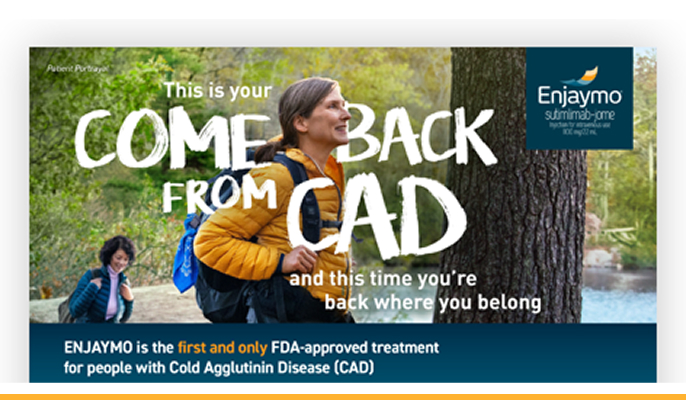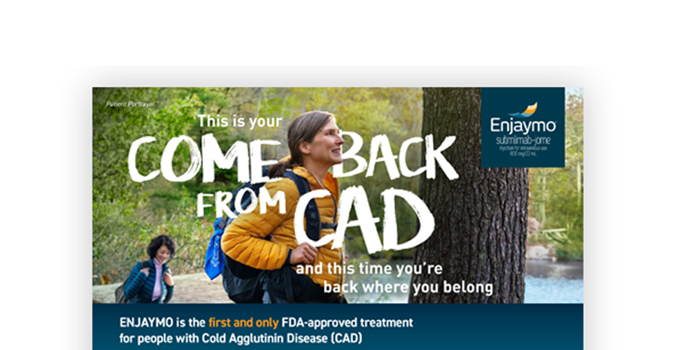 ENJAYMO® is a prescription medicine used to treat the breakdown of red blood cells (hemolysis) in adults with cold agglutinin disease (CAD).